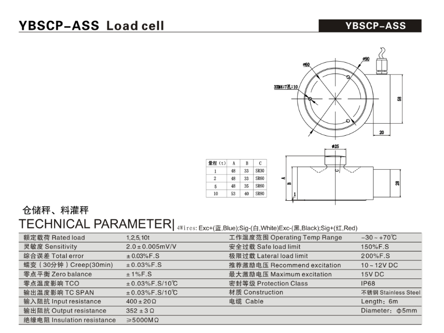 產(chǎn)品系列:YBSCP-ASS型稱重傳感器grY廣州南創(chuàng)電子科技有限公司