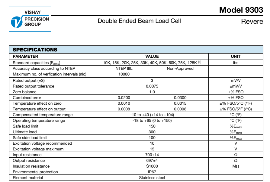 美國(guó)vishay Revere稱重傳感器9303-25klbs產(chǎn)品技術(shù)參數(shù):YZJ廣州南創(chuàng)電子科技有限公司