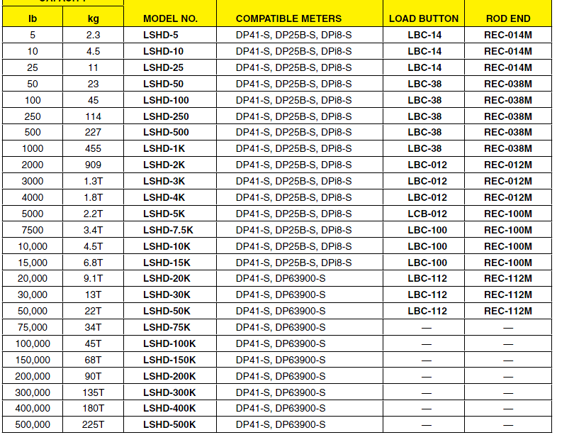 lb      kg     MODEL NO.     COMPATIBLE METERS     LOAD BUTTON      ROD ENDlPr廣州南創(chuàng)電子科技有限公司