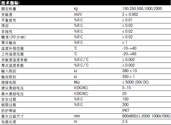梅特勒托利多IL系列稱重傳感器所有量程如下:A5h廣州南創(chuàng)電子科技有限公司