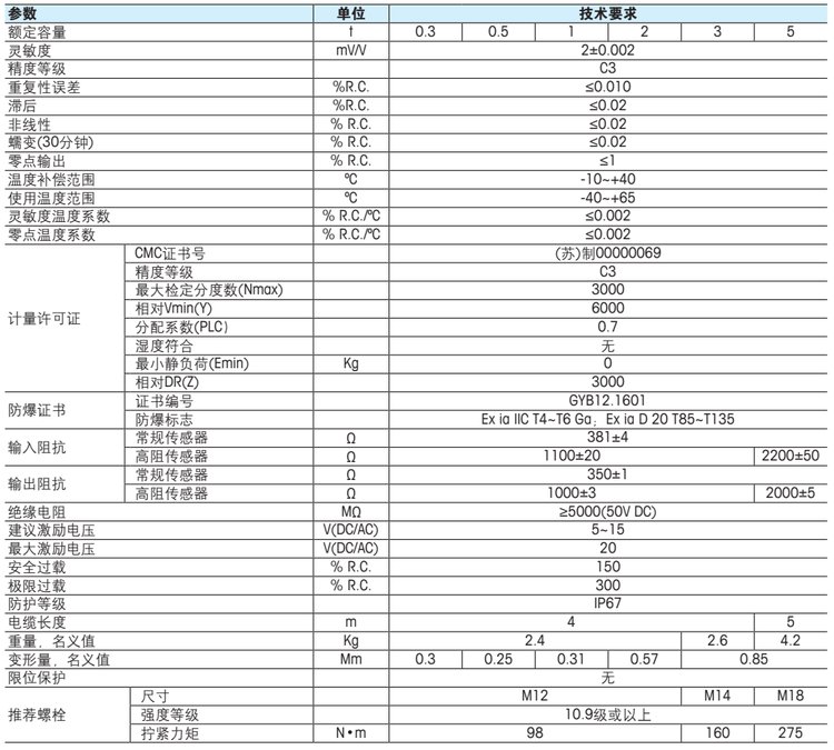 METTLER TOLEDO稱重傳感器SBT-3t技術參數(shù):GoG廣州南創(chuàng)電子科技有限公司
