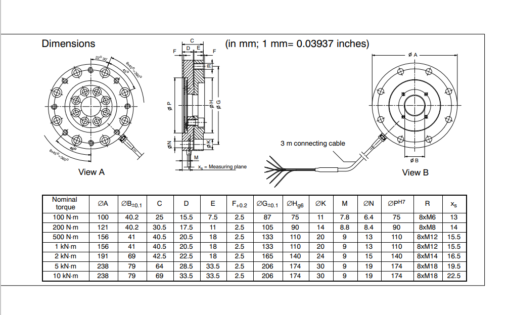 靜態(tài)量程:HBM TB1A扭矩傳感器的量程有100,200,500,1k,2k,5k,10k N.m