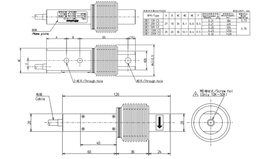 CBE1-5K稱重傳感器Minebea尺寸圖:bPO廣州南創(chuàng)電子科技有限公司