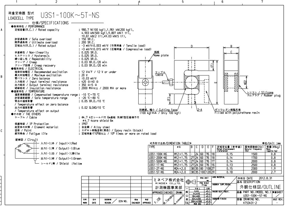 U3B1-1T-B稱重傳感器Minebea尺寸圖:4oC廣州南創(chuàng)電子科技有限公司