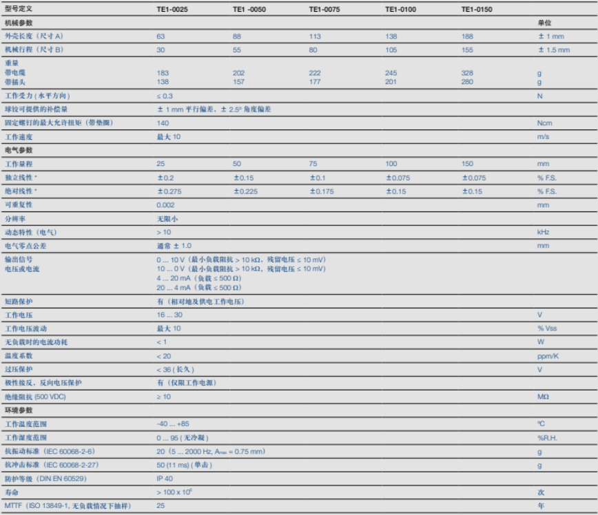 德國NovotechnikTE1-0075 TE1-0100系列直線位移傳感器產品特點:4k4廣州南創(chuàng)電子科技有限公司