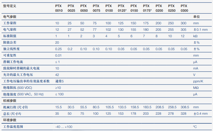 諾沃泰克PTX 0100 PTX 0125位移傳感器技術參數(shù)圖:ZKo廣州南創(chuàng)電子科技有限公司
