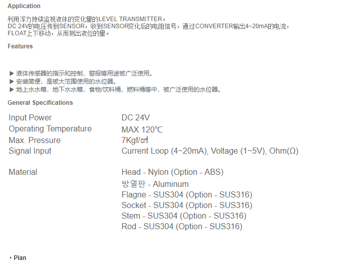 產(chǎn)品中文名稱:韓國大韓液位傳感器zYG廣州南創(chuàng)電子科技有限公司