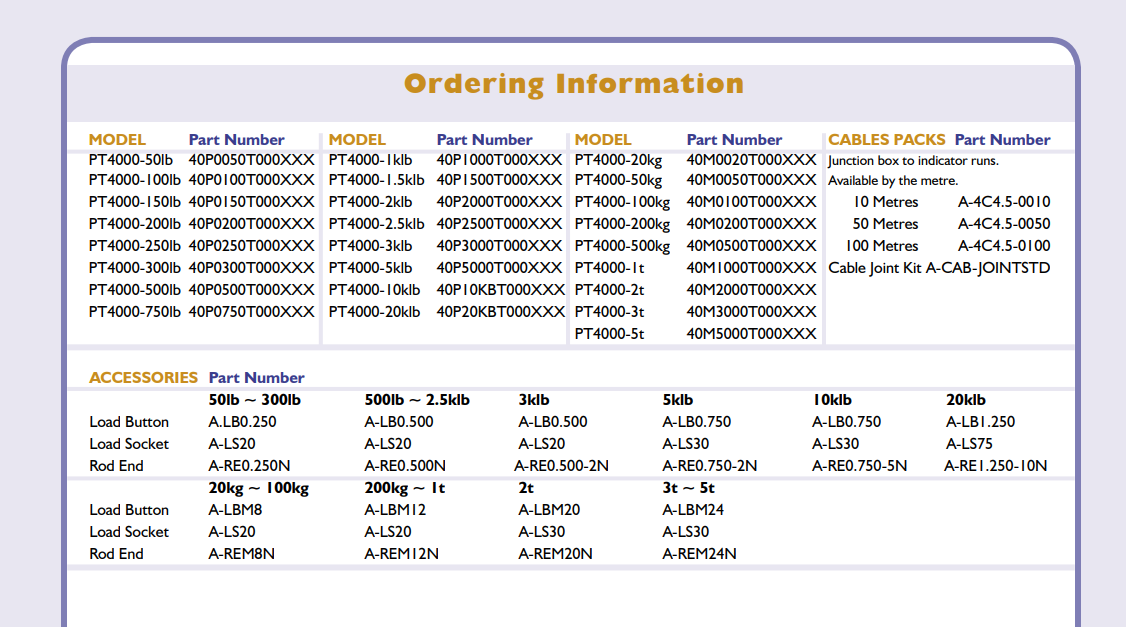 新西蘭PT稱重傳感器PT4000-1T型號(hào)技術(shù)參數(shù)選型資料,以及
