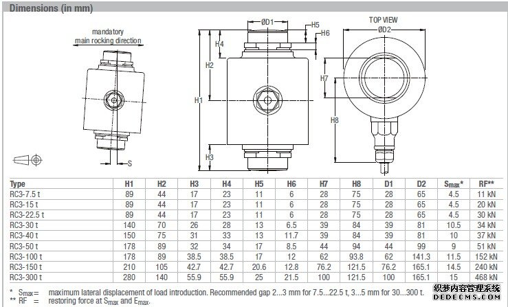 德國富林泰克稱重傳感器類型RC3-7.5t C3是不銹鋼自定心搖桿柱式稱重傳感器