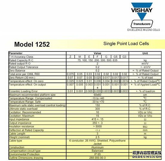 特迪亞1252-75kg稱重傳感器各項(xiàng)技術(shù)指標(biāo):0O4廣州南創(chuàng)電子科技有限公司