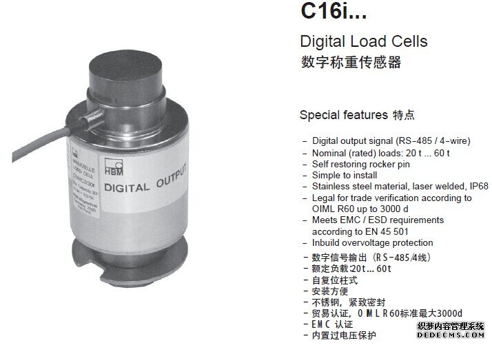 德國HBM C16iC3/40T稱重傳感器產(chǎn)品描述:s8B廣州南創(chuàng)電子科技有限公司