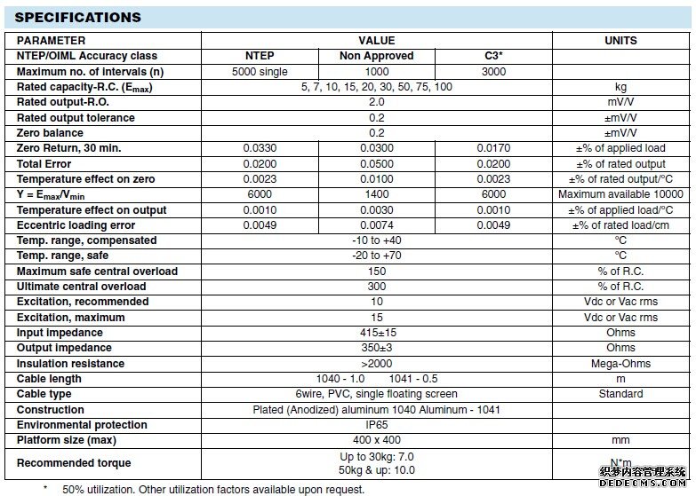 美國(guó)特迪亞tedea 1040-50kg稱重傳感器技術(shù)參數(shù):NhJ廣州南創(chuàng)電子科技有限公司