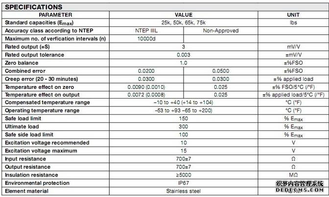 79711: Load Cell, DEB 9423-B10-50k-30P1 50000lb 30ft RTI 3 mv/v 700 OHM WW NTEP IIIL5Cx廣州南創(chuàng)電子科技有限公司