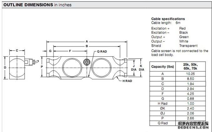 84158: Load Cell, DEB 9323-B10-75k 75000lb 30ft RTI 3mv/v 700 Ohm WW NTEP IIIL 10 M5Cx廣州南創(chuàng)電子科技有限公司