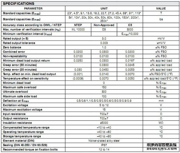 84151: DEB 9223-B10-65k 65000 lb 40 ft RTI 3mv/v 700 Ohm WW NTEP IIIL 10 M FM SSToS8廣州南創(chuàng)電子科技有限公司
