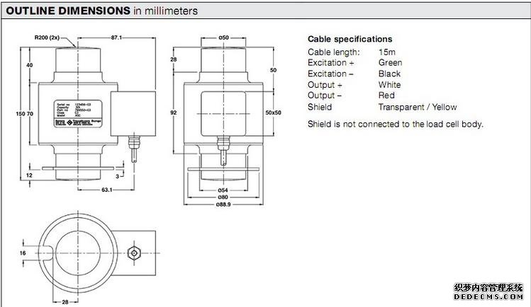17328:  9103-D3-5K-30P1 5,000 lb 30ft RTI 3mV/V 700 OHM WW FM  IP67 5Tn廣州南創(chuàng)電子科技有限公司