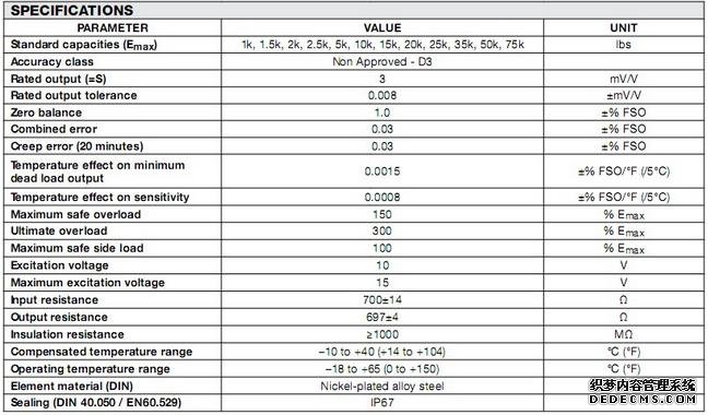 產(chǎn)品名稱:Vishay Revere稱重傳感器5203-2.5klbs