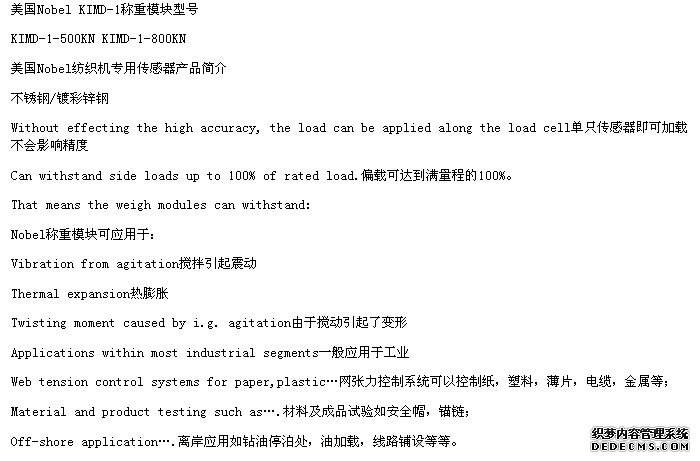 美國(guó)Nobel KIMD-M-500KN稱重傳感器模塊參數(shù):FPi廣州南創(chuàng)電子科技有限公司