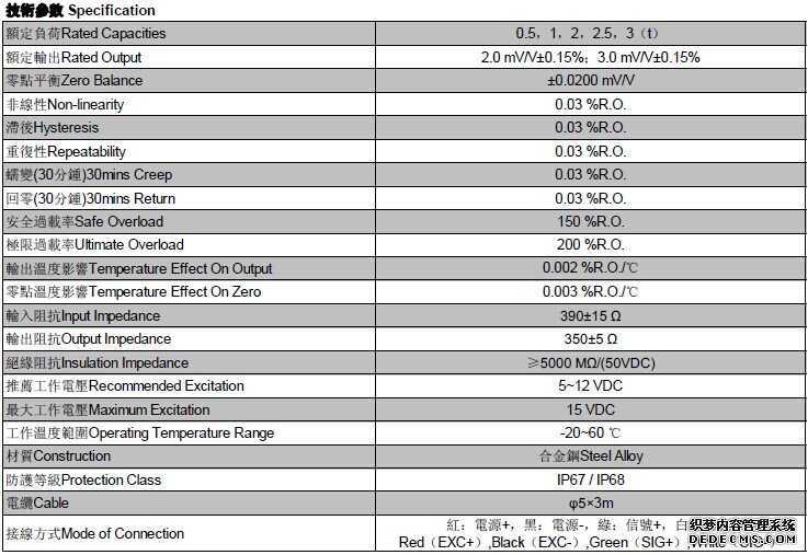 額定輸出Rated Output 2.0 mV/V±0.15%;3.0 mV/V±0.15%6Ur廣州南創(chuàng)電子科技有限公司