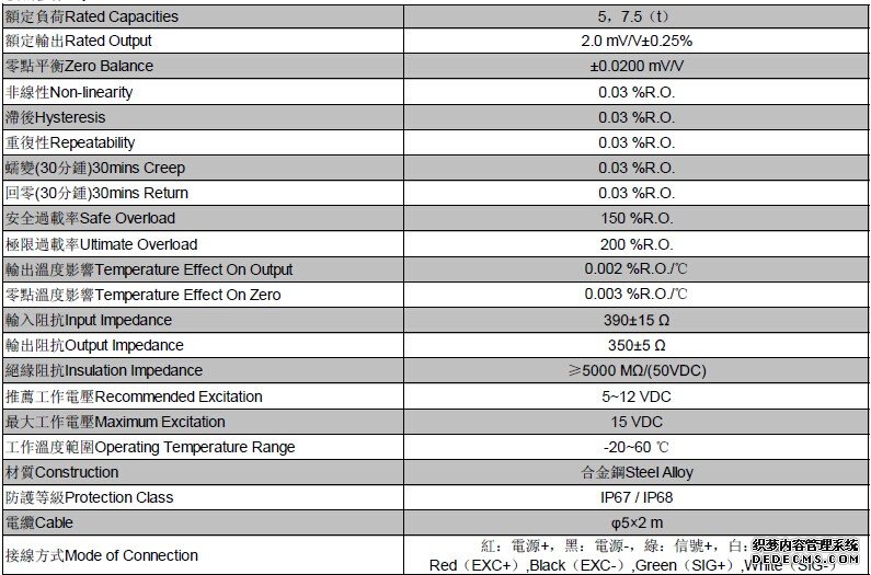 額定輸出:2.0 mV/V±0.25%Vkr廣州南創(chuàng)電子科技有限公司