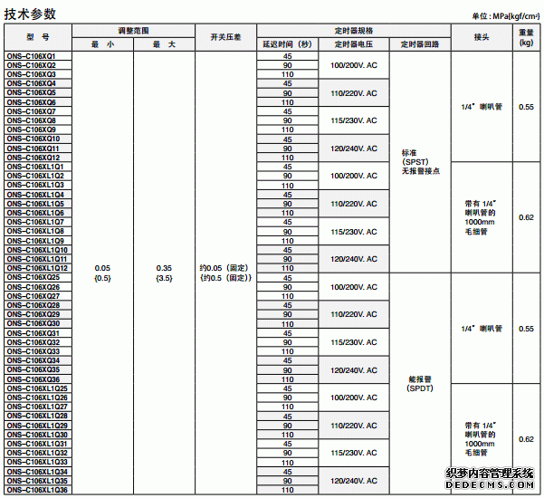 日本鷺宮ONS型油壓保護用壓差控制器技術參數(shù)圖:SIi廣州南創(chuàng)電子科技有限公司