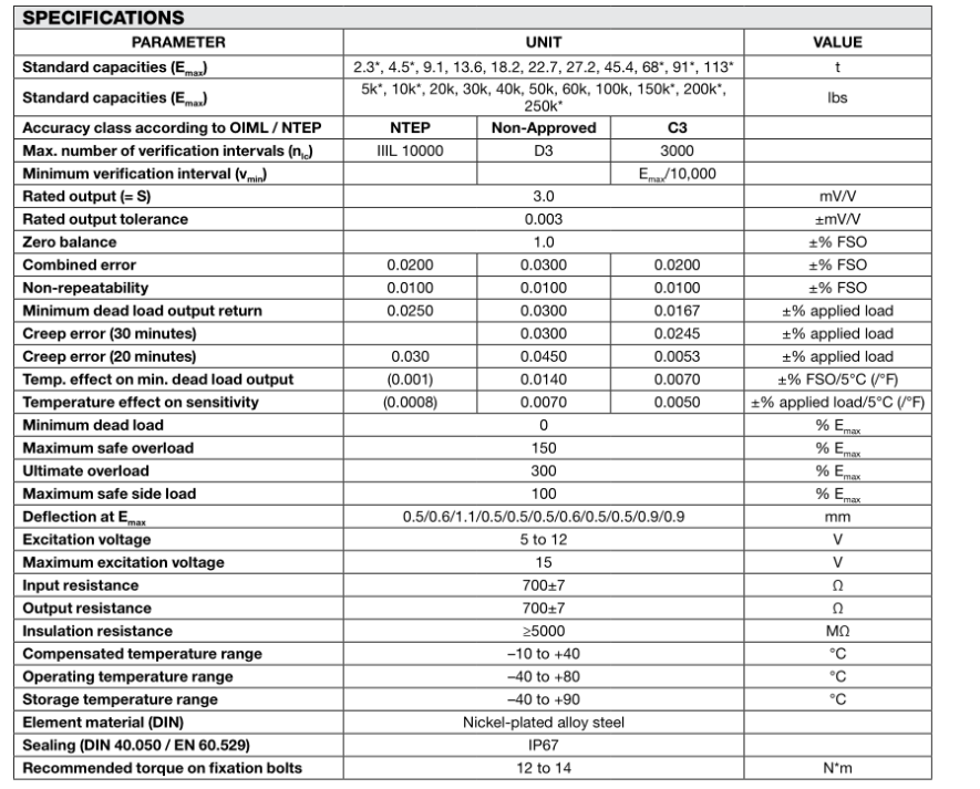 84153: DEB 9223-B10-125k 125000lb 40 ft RTI 3mv/v 700 Ohm WW NTEP IIIL 10 M FM SST Kq2廣州南創(chuàng)電子科技有限公司