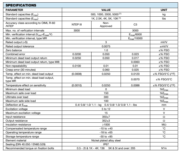 美國vishay Revere稱重傳感器5123-500kg 產(chǎn)品技術(shù)參數(shù):C3e廣州南創(chuàng)電子科技有限公司