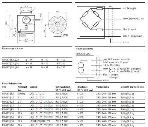 賽多利斯Sartorius PR6201系列稱重傳感器所有量程如下;uSC廣州南創(chuàng)電子科技有限公司