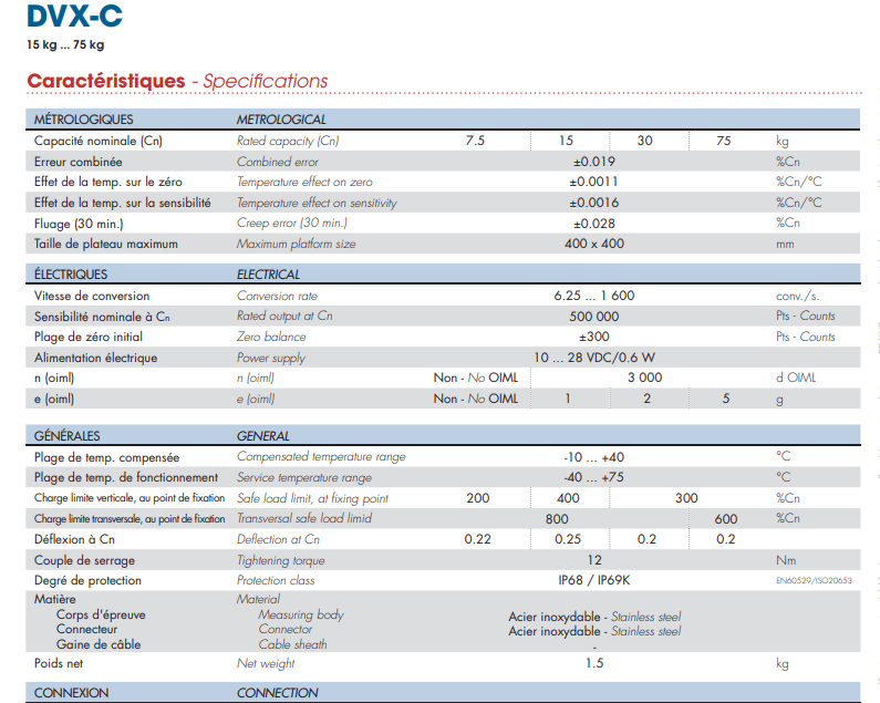法國Scaime稱重傳感器DVX-C-7.5KG產(chǎn)品特性:Ywy廣州南創(chuàng)電子科技有限公司