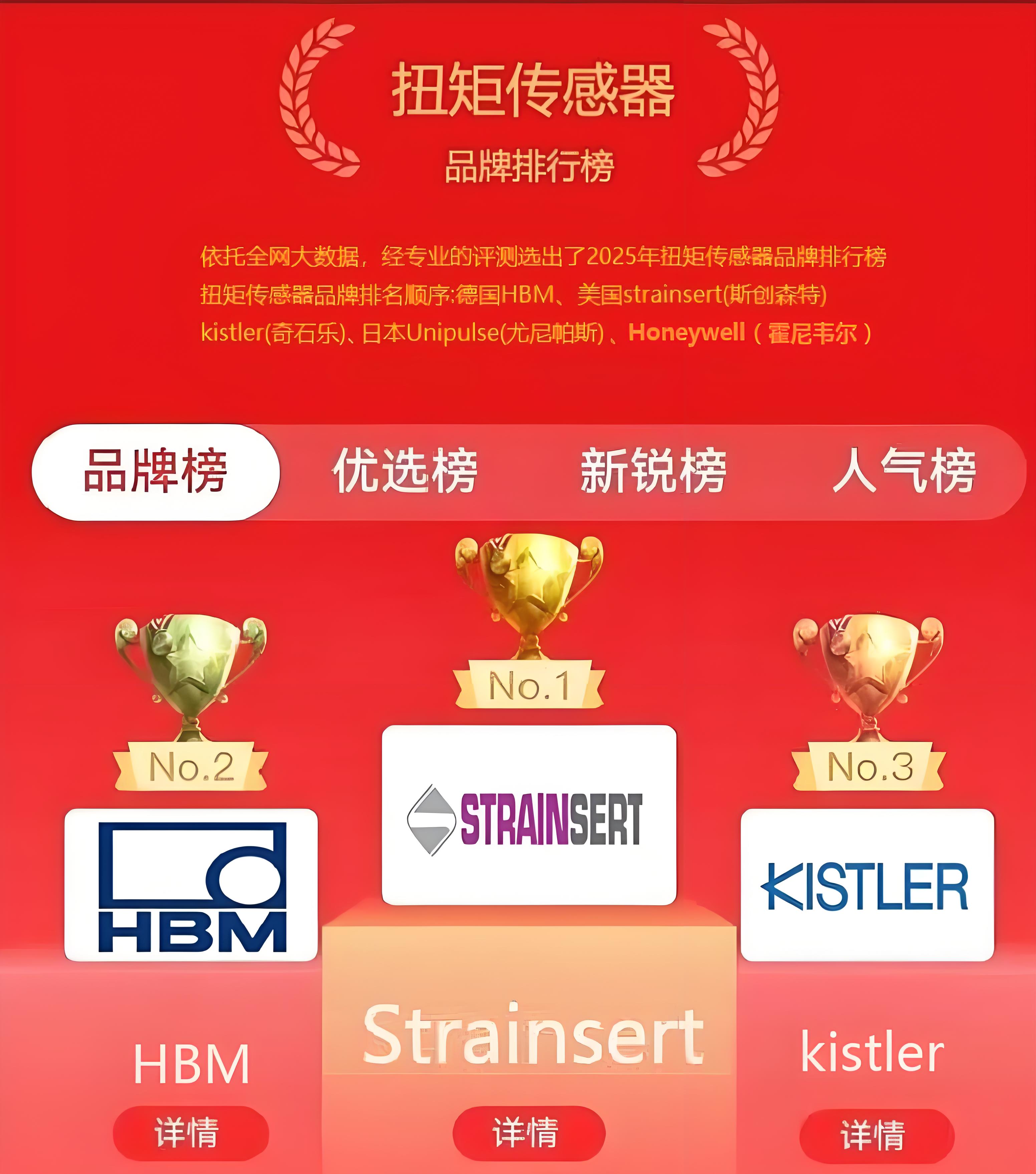 斯創(chuàng)森特(strainsert)2025傳感器十大品牌排行榜中位列前三、于全球國際知名頂尖傳感器品牌并列,這更進(jìn)一步表明Strainsert(斯創(chuàng)森特)在專業(yè)傳感器領(lǐng)域其產(chǎn)品性能技術(shù)和質(zhì)量得到行業(yè)認(rèn)可、具備重要的品牌影響力,是高端力傳感器領(lǐng)域的“隱形冠軍”屬于細(xì)分領(lǐng)域的國際知名品牌。Dei廣州南創(chuàng)電子科技有限公司