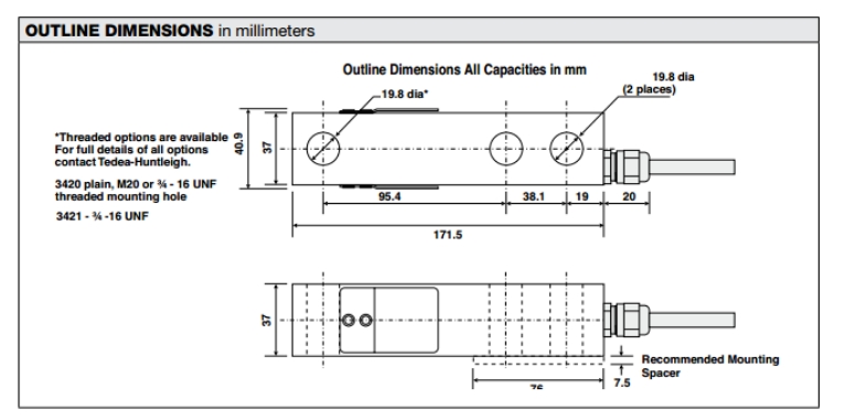 特迪亞稱重傳感器3420-2000LB產(chǎn)品尺寸:PKy廣州南創(chuàng)電子科技有限公司