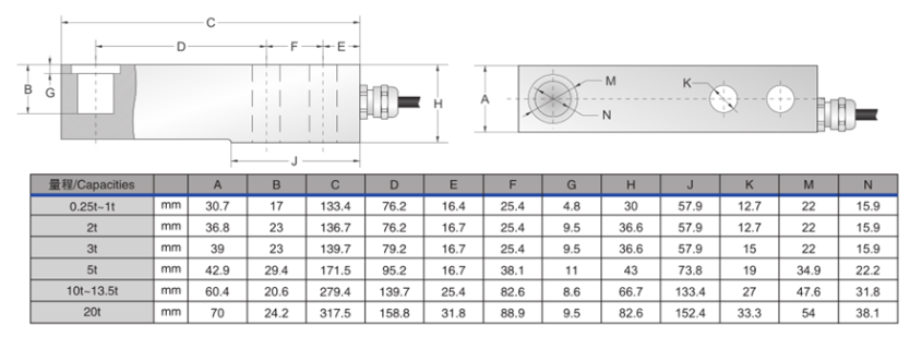 量程范圍:250kg,500kg,1t,2t,3t,5t,10t,13.5t,20tze1廣州南創(chuàng)電子科技有限公司