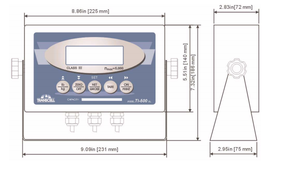 美國傳力TranscelTI-500SL稱重顯示儀表尺寸圖:IGy廣州南創(chuàng)電子科技有限公司