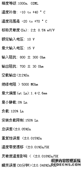 1、輸入阻抗:由于傳感器的輸入端彈模補(bǔ)償電阻和靈敏系數(shù)調(diào)整電阻,所以MOD740-30t傳感器的輸入電阻都大于輸出電阻,但可通過并聯(lián)電阻方法使其變化。要求各傳感器的輸入阻抗一致,若與其它廠家的傳感器匹配。則應(yīng)使輸入阻抗與其一致,否則在調(diào)試四角誤差時會增加工時,因為傳感器的輸入阻抗對穩(wěn)壓電源而言是一個負(fù)載,只有負(fù)載一樣,同一穩(wěn)壓電源才會提供一樣的電源電壓。  2Cu廣州南創(chuàng)電子科技有限公司