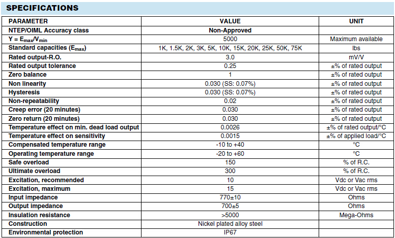 美國世銓Celtron DSR系列稱重傳感器所有量程如下: DqB廣州南創(chuàng)電子科技有限公司