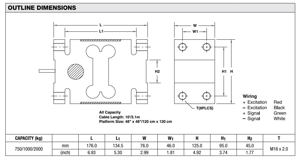 美國(guó)威士世銓HOC-750kg稱重傳感器有3個(gè)量程可選,分別是HOC-750kg、HOC-1000kg、HOC-2000kg,主要應(yīng)用于大量程平臺(tái)秤、包裝機(jī)、灌裝秤、煤炭輸送機(jī)秤等方面稱重測(cè)量,其尺寸圖如下:8kZ廣州南創(chuàng)電子科技有限公司