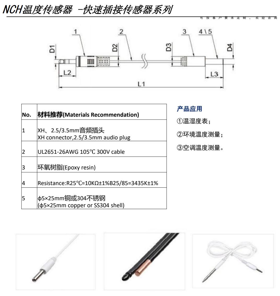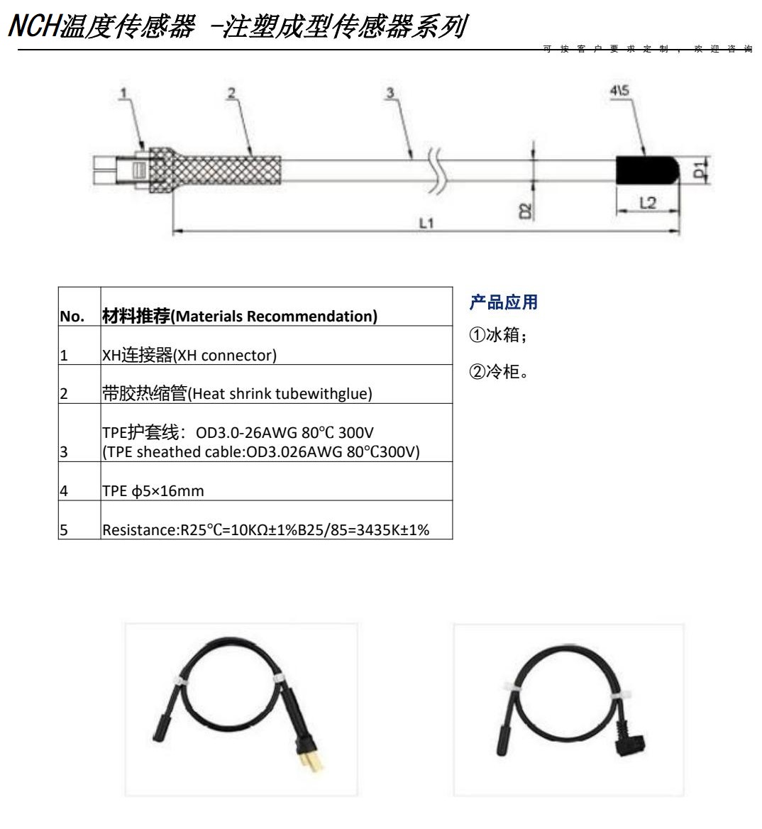 NCH溫度濕度傳感器用于冰箱、冰柜、冷藏室、冷凍室、蒸發(fā)器、壓縮機