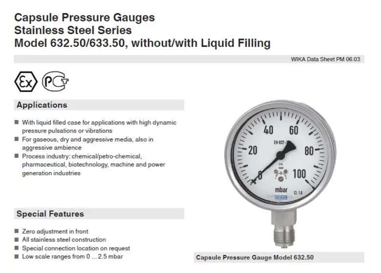 德國威卡wika壓力表更多產(chǎn)品詳細資料請點擊:wika壓力表威卡進入頁面可查找wika壓力表型號、威卡壓力表技術(shù)參數(shù)選型資料,以及威卡wika壓力表具體安裝技術(shù)指導(dǎo)信息。I8e廣州南創(chuàng)電子科技有限公司