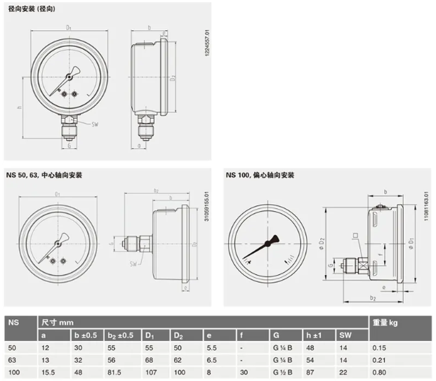 Wika威卡壓力表的尺寸圖:I8e廣州南創(chuàng)電子科技有限公司