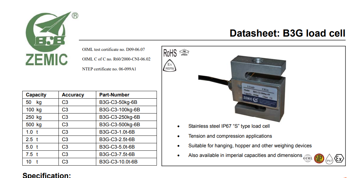 美國ZEMIC B3G-C3-250KG-6B稱重傳感器NTEP認證,證書號:06-099A1TNG廣州南創(chuàng)電子科技有限公司
